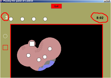 Den stora svarta fyrkanten är spelplanen. Den vita
