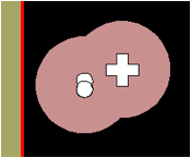Ställ muspekaren på lagom avstånd från en rund pjäs utan att klicka. Om