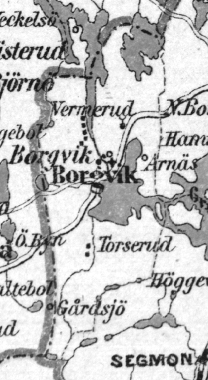Borgvik. Sn i Grums hd, Vermlands län, vid nedre delen af sjön Vermelen, som här mynnar i Borgviken af Venern; i ö. grannsn löper Bergslagernas jernväg, i v. grannsn Byelfvens kanalled. 0,544 qv.-mil, hvaraf land 0,460 eller 10.646 tnld, 8 11/12 mtl, 1.317 inv., 702.500 kr. fastighetsvärde. Kuperad skogsbygd, hufvudsakligen tillhörande Borgviks bruk. Borgvik har liknämnd poststation och gästgifvaregård, hvarifrån skjutsas till Ökne 1,8 mil, Malsjö 0,8, Heljebol 1,8 Mi. Sn är annex till Nor. -- Borgviks bruk, anlagdt vid Vermelens utlopp, består af stångjerns- och manufakturverk, tax. 61.200 kr., qvarn 25.000 kr., såg 15.000 kr., masugn 61.500 kr., bessemerverk 75.000 kr., hvartill komma jordegendomarne Borgvik, Bjurtan, Borgvikstorp, Löfåsen, Måserud, Nygård, Starrkärr, Torserud, Takene och Vermerud. Hela egendomen med bolaget tax. 468.200 kr. Borgviks aktiebolag eger fastigheter i flere andra snr.